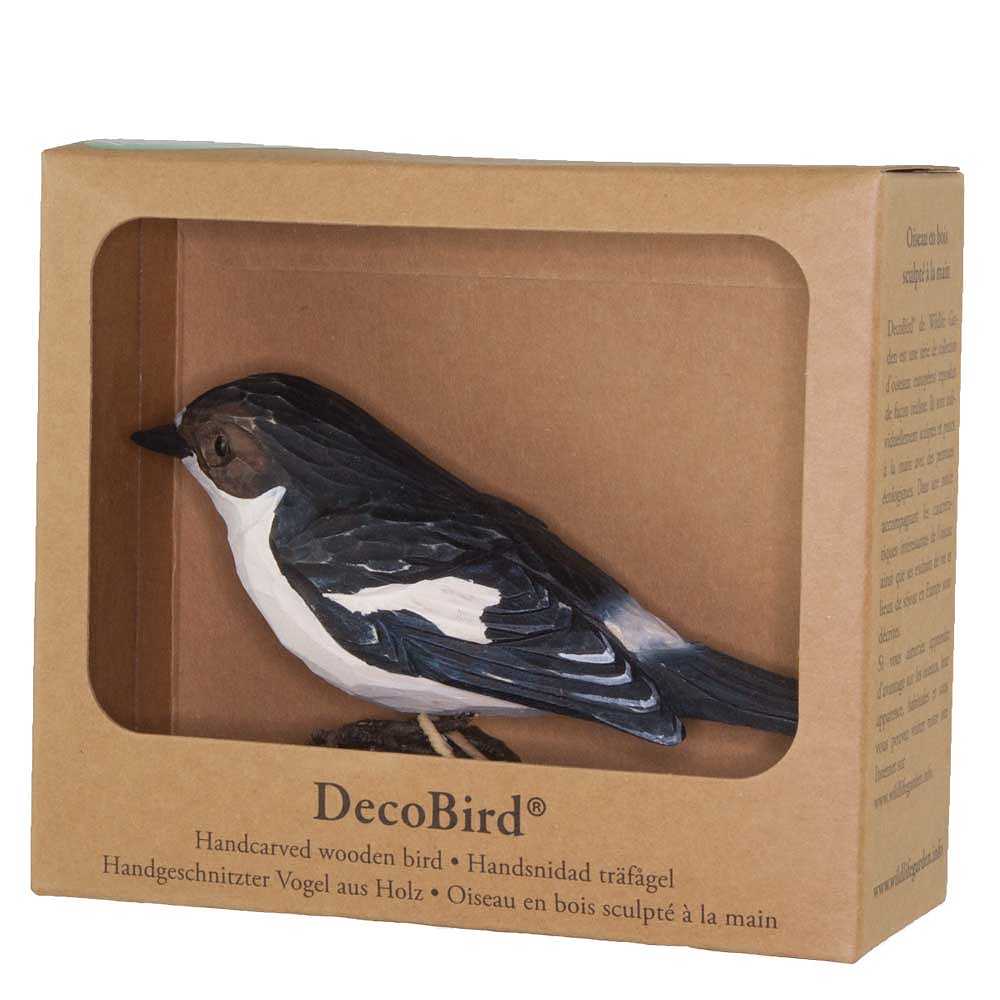 Onder de naam DecoBird presenteren wij een serie van ambachtelijk vormgegeven houten vogels. De serie bestaat uit levensecht vorm- en kleurgegeven modellen van de bekendste Europese kleine vogels waaronder de Bonte Vliegenvanger . De vogels worden op ware grootte weergegeven en zijn beschilderd met milieuvriendelijke verf.