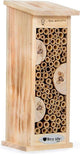 Met dit insectenhotel kun je de meest uiteenlopende insecten naar je tuin lokken. Wilde bijen & vreedzame solitaire wespen zullen dankbaar gebruik van de holle ruimtes in de bamboe stokken. De ruimte met het zaagsel trekt lieveheersbeestje en andere keversoorten aan. Bovendien beschikt het insectenhuis over 2 ruimtes die voorzien zijn van smalle openingen en daarom bedoeld zijn voor vlinders & gaasvliegen. De onderste ruimte kan worden geopend waardoor je hem zelf kunt vullen. Het bijenhotel is een echte eye catcher met dank aan de vlinder die op het dak van het huisje staat afgebeeld.