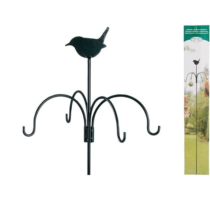 Dit voedersysteem 150cm. van Best for Birds is zeer geschikt voor tuinvogels. Het systeem bestaat uit een groen gepoedercoate metalen paal met bovenaan vier sierlijke haken en een decoratieve vogel bovenop. Door het gepoedercoate materiaal is het voedersysteem duurzaam en bestand tegen weersinvloeden. Door de handige, scherpe, pinnen aan de onderkant van het voedersysteem kunt u het voedersysteem eenvoudig in uw tuin zetten natuurlijk eveneens te gebruiken op uw terras of patio in een bloembak. De stang bestaat uit twee delen waardoor het makkelijk te verzenden en te vervoeren is, u hoeft enkel de twee delen op elkaar te klikken. Wij raden u aan het voedersysteem op een open ruimte te plaatsen welke gemakkelijk te bereiken is voor vogels.Doordat het systeem haken bevat kunt u zelf gemakkelijk vetbollen, silo's en andere vogelproducten toevoegen aan het voedersysteem. Door de combinatie van de verschillende voedermogelijkheden die u zelf kunt toevoegen trekt u vele verscheidene tuinvogels aan.Tevens creeërt u met de sierlijke vormgeving van het voedersysteem evenzeer in de winter als in de zomer een gezellige, chique, sfeer in uw tuin. Let op: wordt geleverd zonder voeders silo's / bakjes ! Gebruikersvoordelen: Weerbestendig Lange levensduur Chique uitstraling door het sierlijke ontwerp Aantrekken van verschillende tuinvogels Onderhoudsvriendelijk Meerdere voederopties mogelijk zoals vogelvoer*, water, vetproducten, cakes en hang-silo's die u zelf kunt toevoegen aan het systeem! *VogelvoerU vindt in ons assortiment een ruime keuze uit soorten vogelvoer vinden. Ook kunt u hier vogelvoer vinden wat specifiek op een vogelsoort is gericht, bijvoorbeeld de merel en het roodborstje.