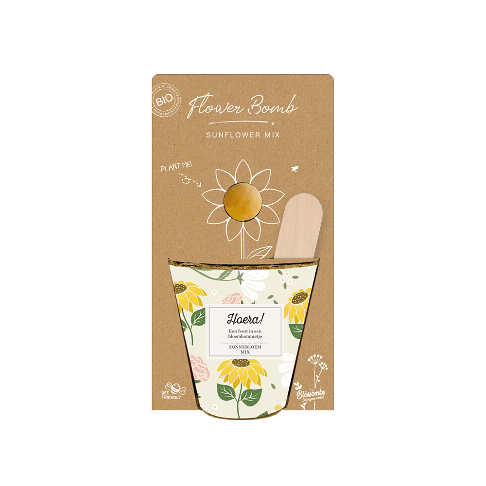 Grow Kit "Hoera!" met Zonnebloem Mix Zaadbommetje