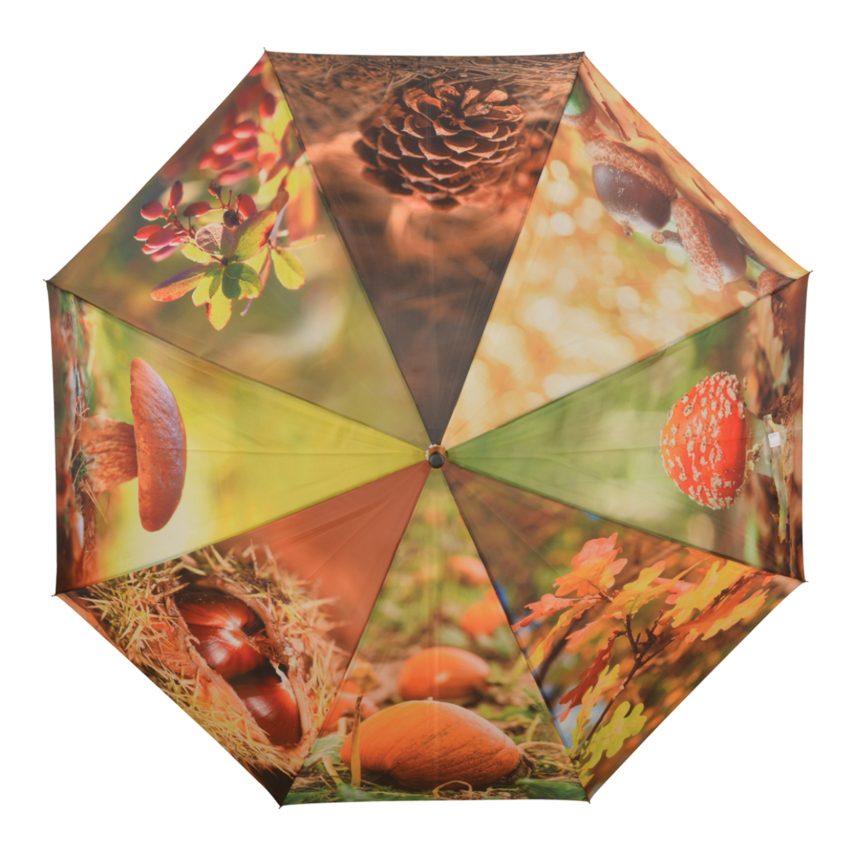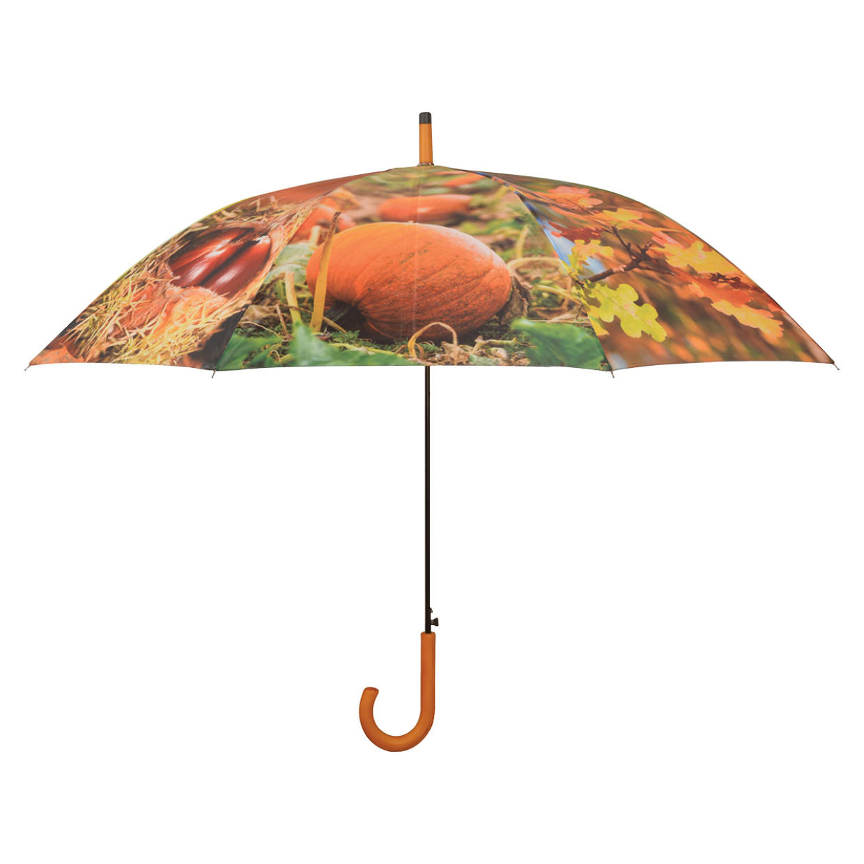 Parapluie avec 8 sprints d'automne différents ; citrouille, châtaigne, champignon, baies, pomme de pin et feuilles
