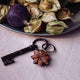 Un porte-clés amusant et pratique qui aide à organiser vos clés. Le papillon est sculpté à la main dans une seule pièce de bois et peint à la main en utilisant uniquement des peintures respectueuses de l'environnement. Il est attaché à un anneau en métal.