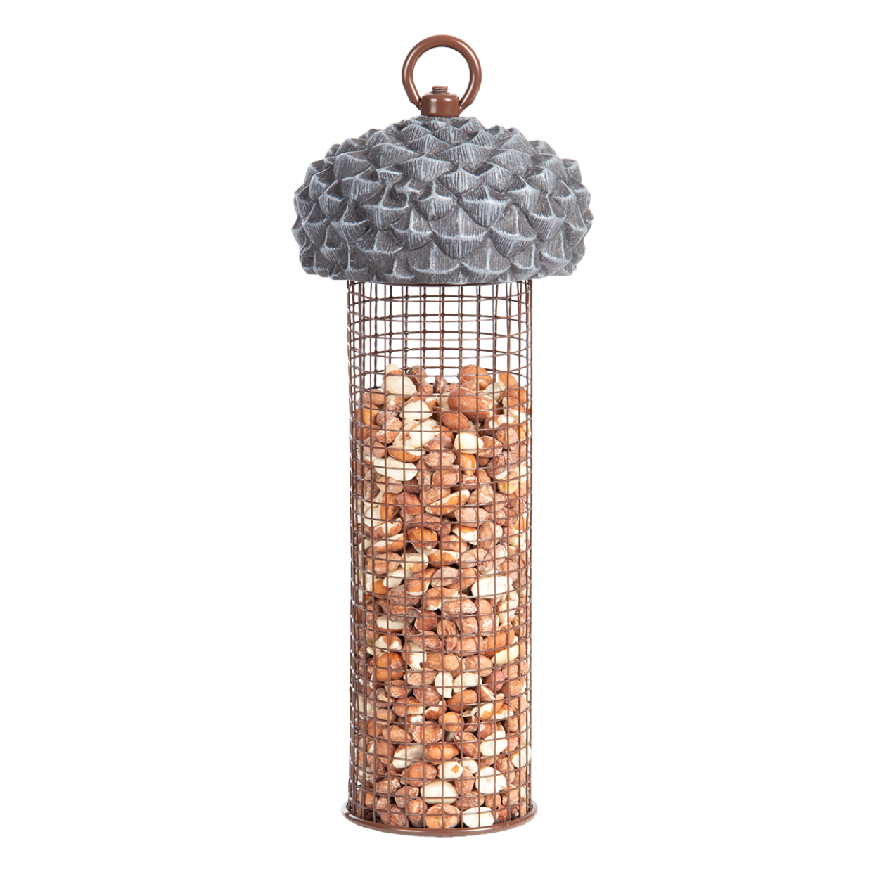 Ce silo à glands est facile à remplir. Le couvercle s'enlève en dévissant l'anneau. Sa conception ouverte facilite l'accès et le remplissage. Le couvercle a la forme d'un gland.