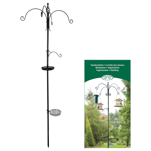 La station d'alimentation, d'abreuvement et de bain tout-en-un ultime pour les oiseaux de jardin. Cette station pratique et décorative est facile à assembler et est idéale pour n'importe quel jardin. Différents aliments peuvent être suspendus aux différents crochets. De plus, les bols fournis peuvent être remplis d'eau ou de graines. ensemble composé d'une tige de 4 pièces, d'un crochet double, d'un crochet simple, d'un bol d'eau et d'un bol d'alimentation facile à assembler k/d emballé dans une boîte cadeau en couleur