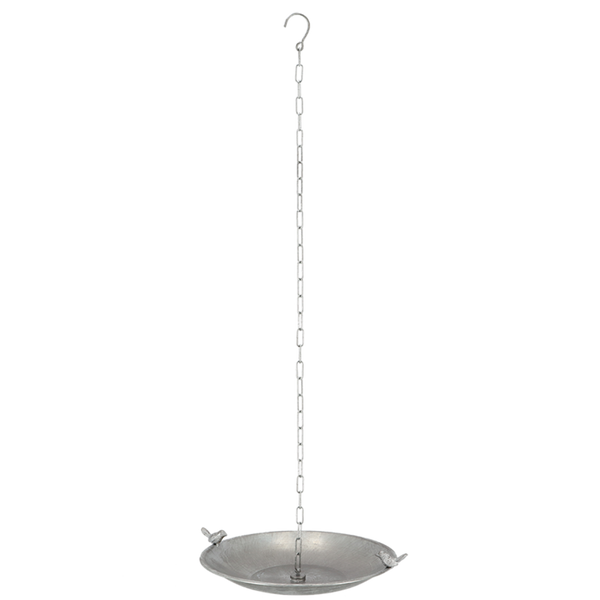 Cette chaîne de pluie décorative et fonctionnelle comporte un bain d'oiseau et peut être attachée à la gouttière.