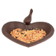 Bain d'oiseaux en fonte brun foncé de conception classique de haut niveau avec deux oiseaux sur le bord.
