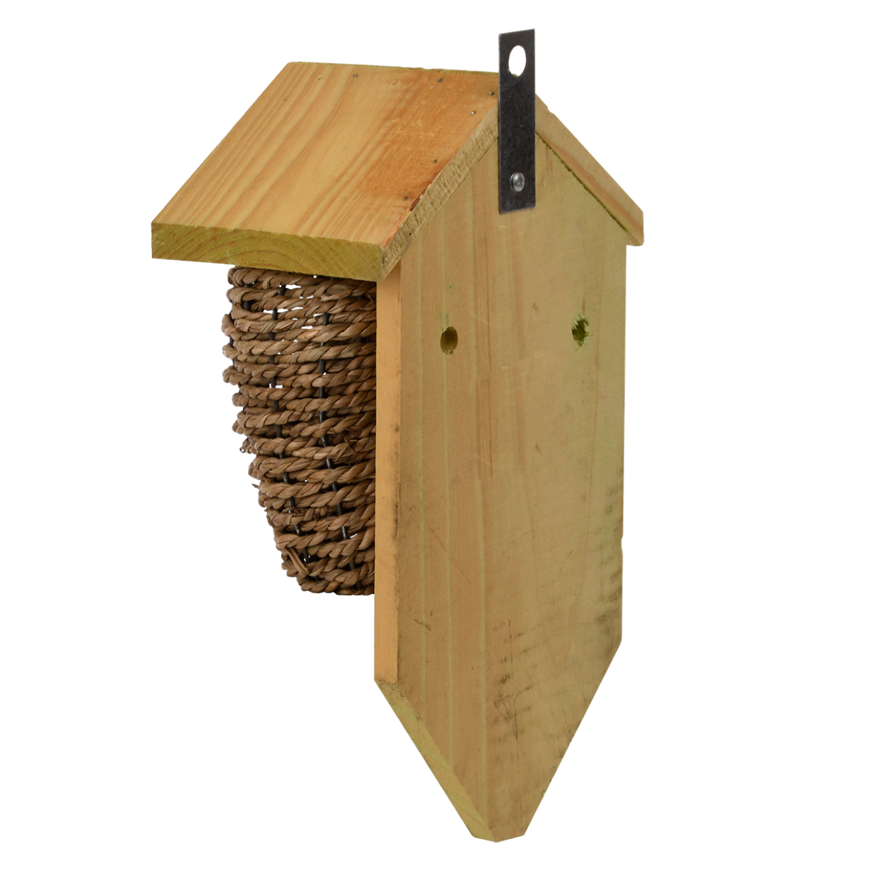 Ce nid traditionnel rempli d'herbes marines offre au troglodyte un lieu de nidification idéal, contribuant ainsi au maintien ou au rétablissement des populations de cette espèce d'oiseau dans une zone donnée. Il offre également aux oiseaux un abri précieux contre les rigueurs de l'hiver. Placez le nid sur un arbre ou un mur, à une hauteur maximale de deux mètres, à l'abri des regards, parmi des arbustes denses ou du lierre, dans un endroit calme et relativement abrité – ni directement au soleil ni du côté pluvieux –, avec une trajectoire de vol dégagée pour l'oiseau.