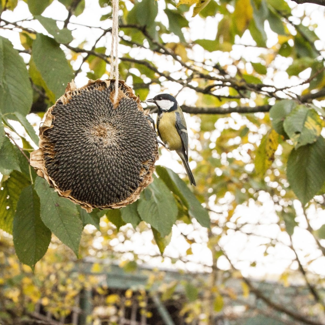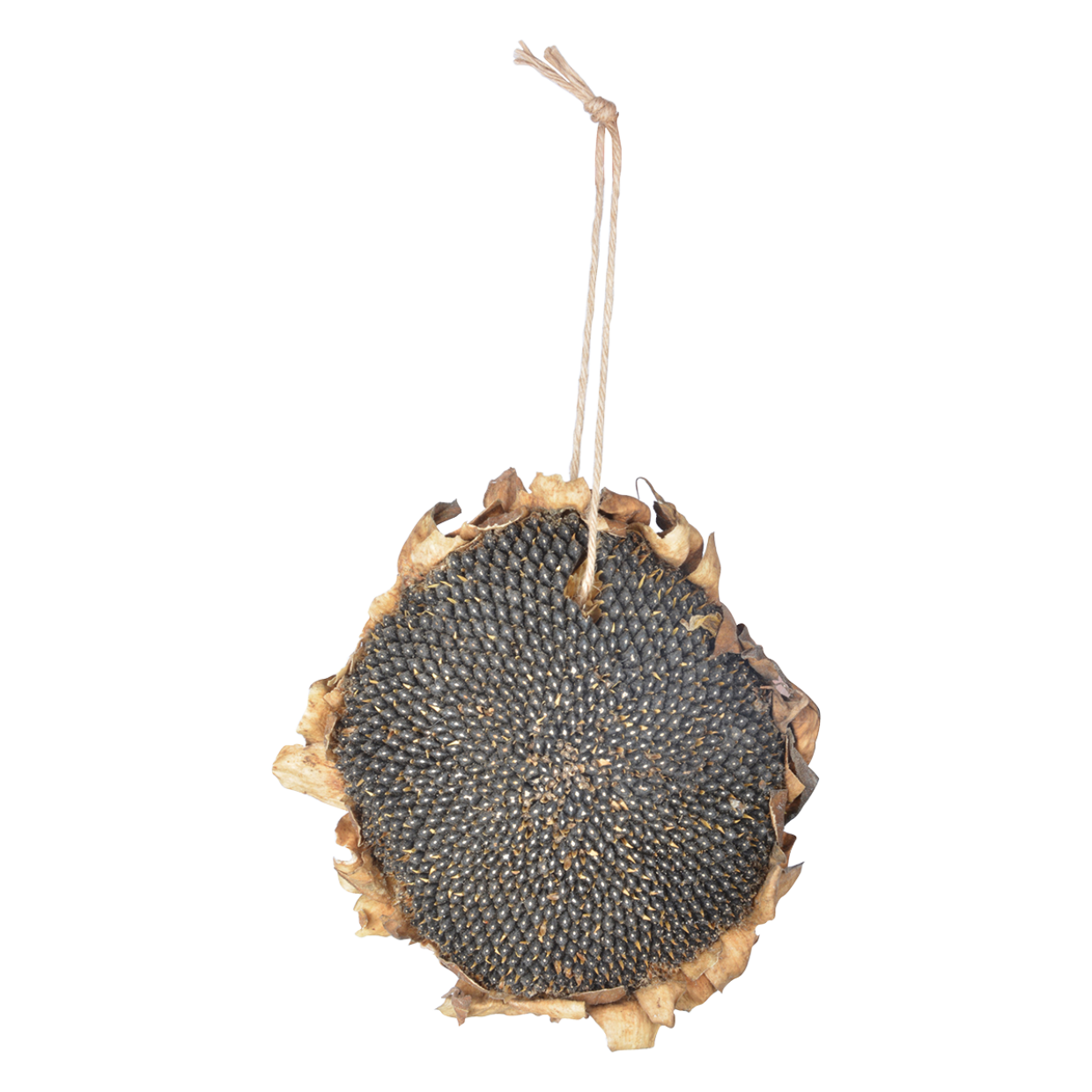 Tournesol séché. Un plat sain prêt pour les oiseaux, y compris un cordon de suspension pratique.