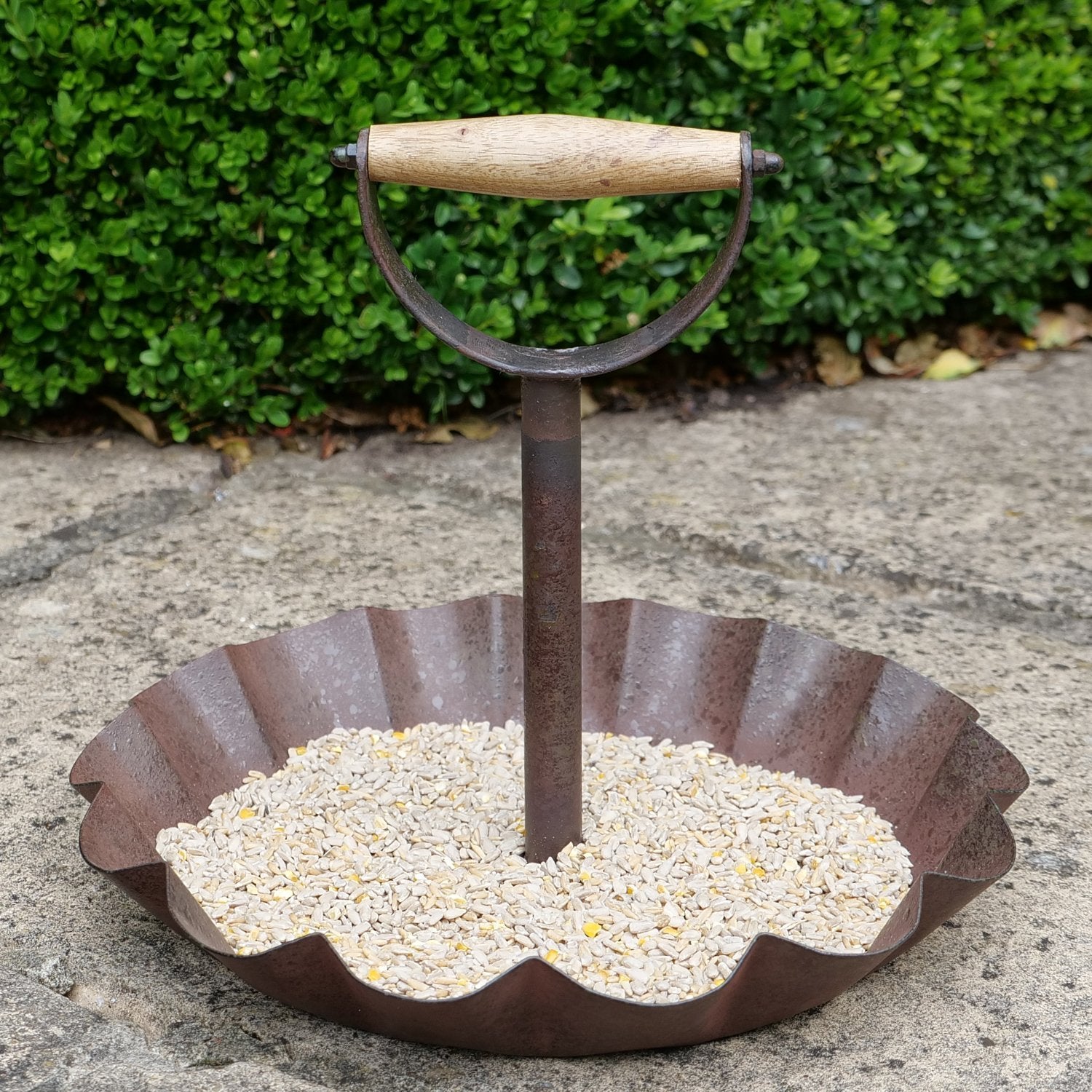 L'alimentateur au sol Boxwell est extrêmement polyvalent. Het heeft een handvat van een spade voor bewegingsgemak dat ook kan dienen als een zitstok en een stevige lip rond de hele voerschaal om voldoende ruimte te bieden als landingsplaats voor meerdere vogels of als een richel voor kleine zoogdieren zoals egels om over te reiken toegang tot het Manger. Les produits sont fabriqués à la main en métal avec une finition soignée et ont un aspect bronzé et antique.