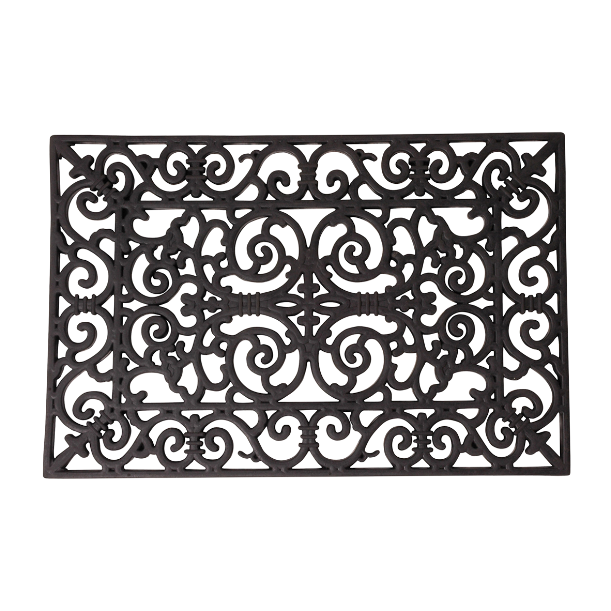 Ce paillasson rectangulaire en caoutchouc est idéal pour l'extérieur ou la maison. Le tapis en caoutchouc a un motif victorien classique avec des boucles gracieuses. L'avantage d'un paillasson entièrement en caoutchouc est qu'il est très facile à nettoyer en rinçant le tapis. De plus, le matériau garantit que le tapis ne glisse pas.