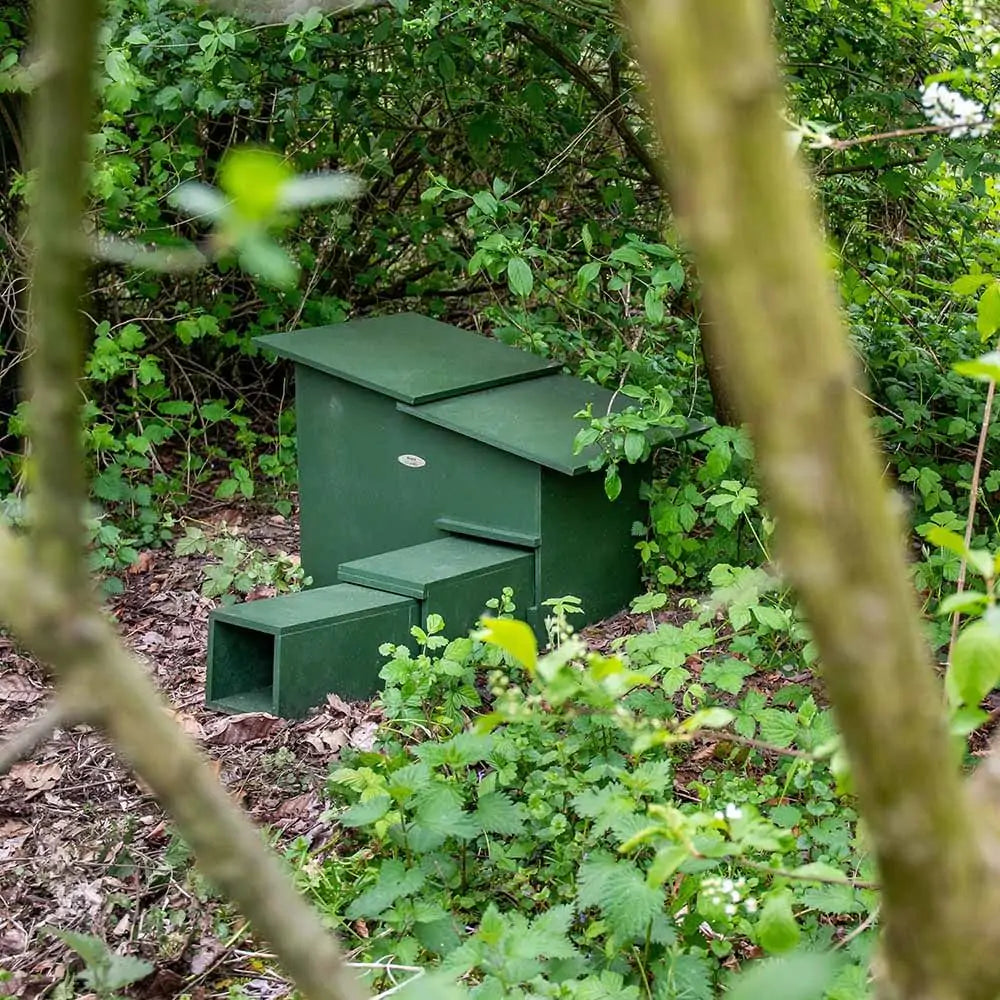 La couleur verte naturelle de la Maison pour Hérisson Deluxe XXL s'intègre parfaitement à votre jardin. Si possible, placez-la à l'abri, sous un arbuste persistant. Avril et octobre sont les meilleurs mois pour installer une maison pour hérisson, car ce sont les mois où commence et se termine l'hibernation. Si le printemps reste froid plus longtemps, les hérissons hiberneront plus longtemps. Veillez donc à ne pas les déranger.
