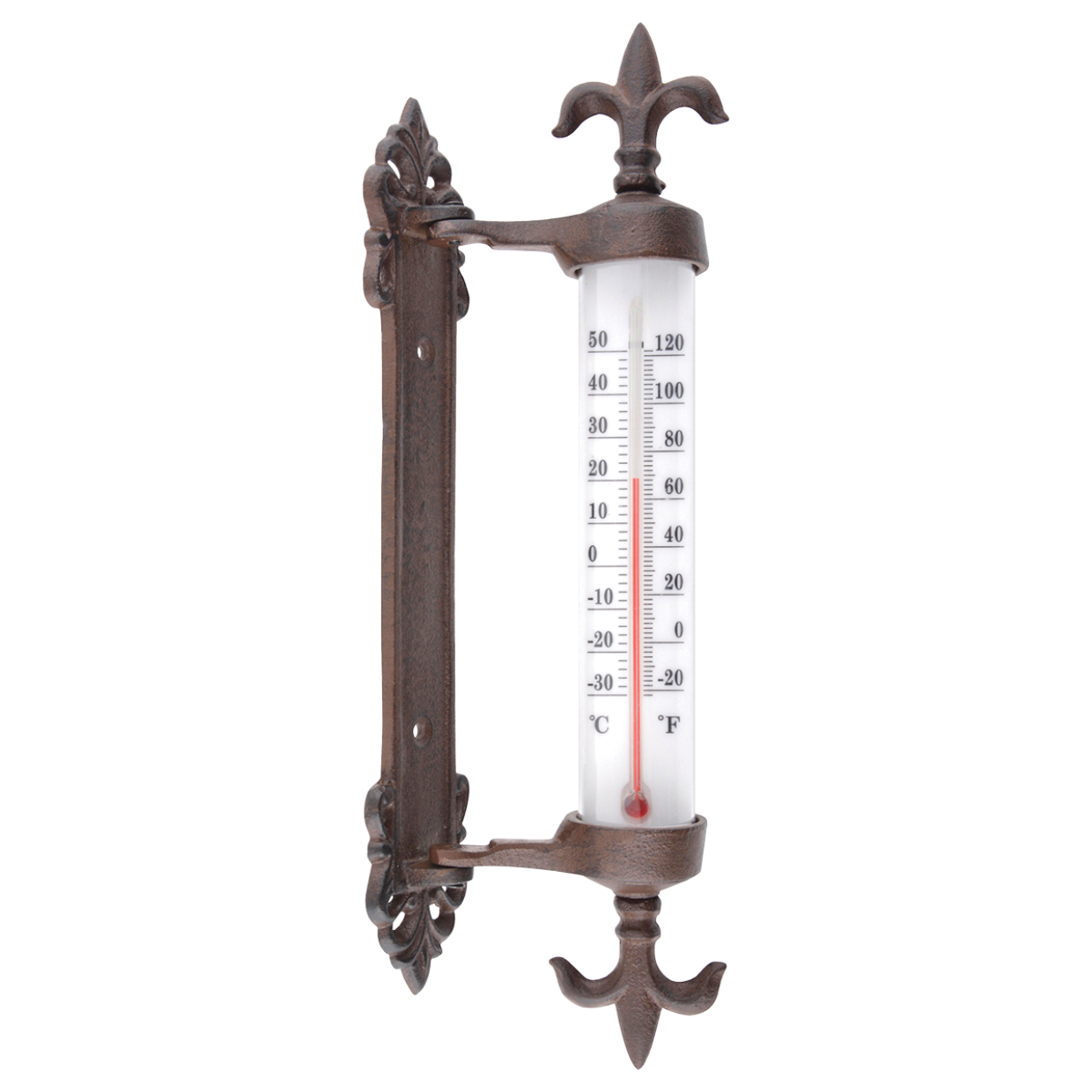 Comme c'est pratique, avec ce thermomètre à cadre, il est possible de lire la température extérieure de l'intérieur. Le thermomètre est fixé au cadre et peut ensuite être tourné pour lire la température entre -30°C et +50°C (-20°F et +120°F) à partir de n'importe quelle position souhaitée. Ce thermomètre décoratif à cadre en fonte est moulé individuellement à la main selon un savoir-faire et une tradition séculaires.