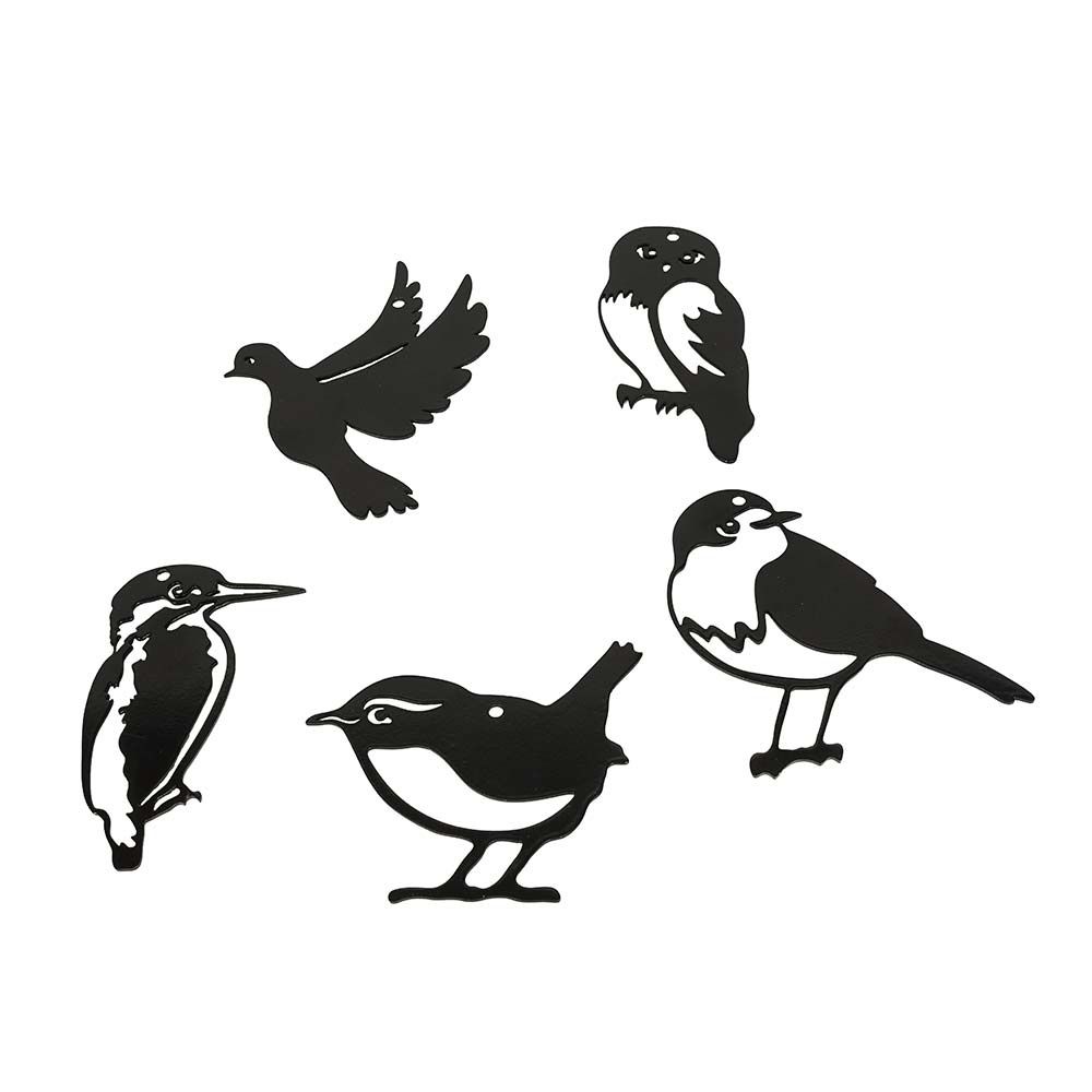 Décorez votre jardin avec cet ensemble de mini-oiseaux en métal. Suspendez-les à un arbre ou égayez une clôture terne. Votre fenêtre est également un endroit idéal pour admirer cet ensemble d'oiseaux. L'ensemble comprend 5 silhouettes d'oiseaux différentes : un pic épeiche, une chouette, un rouge-gorge, un troglodyte mignon et une colombe.