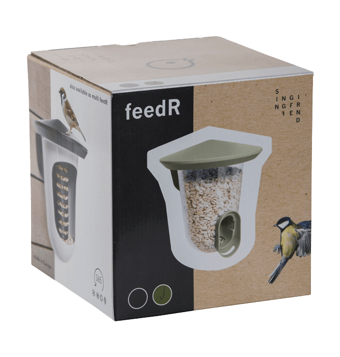 La conception et la fonction du feedR ont été bien pensées. Vous pouvez voir exactement la quantité de nourriture qu'il contient. Fixez ce produit avec le velcro ou les vis fournis. Et le nettoyage ou le remplissage du feedR est également facile, vous pouvez desserrer et serrer le fond en un seul mouvement.