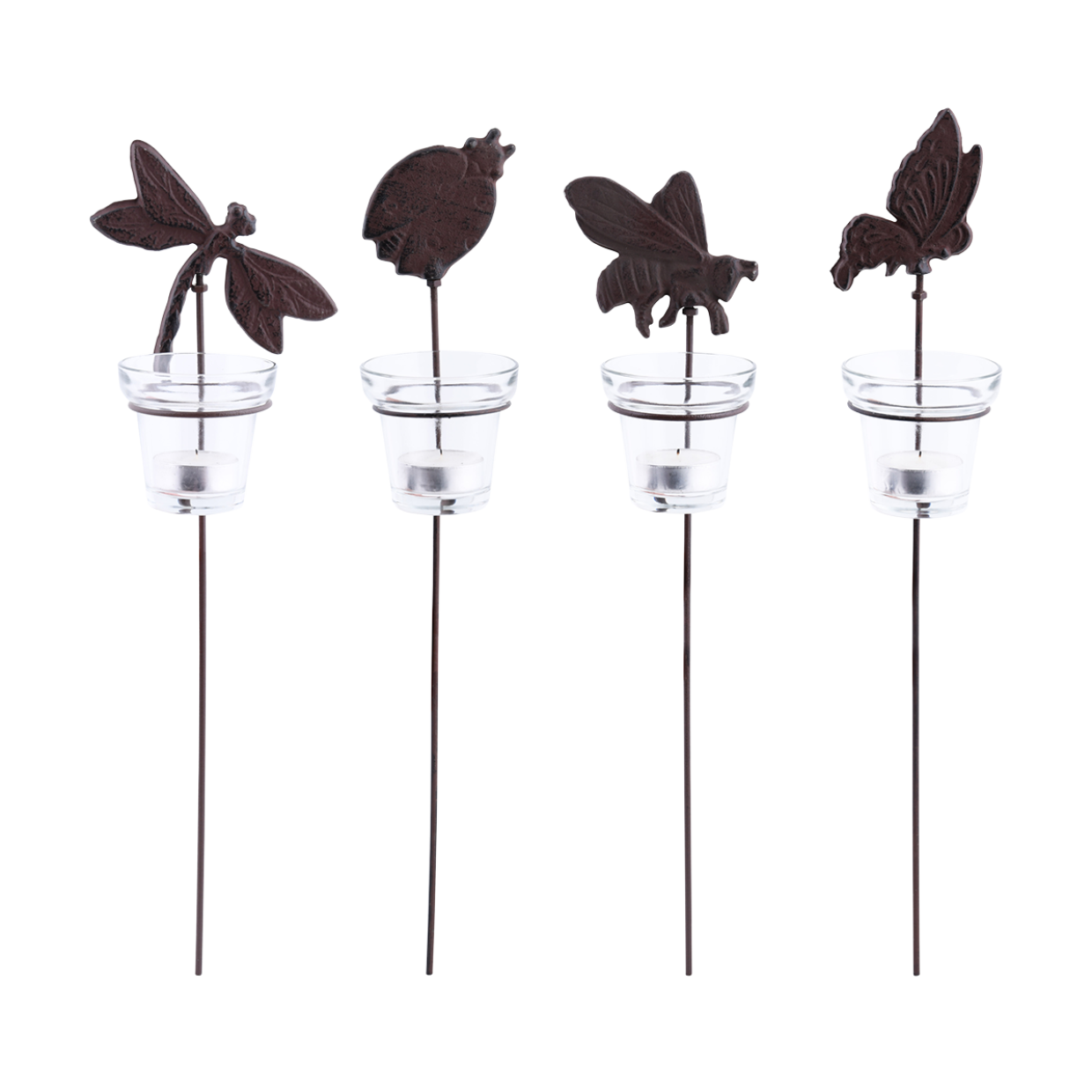 Grâce à leur travail reconnaissant, les insectes ne devraient manquer dans aucun jardin. Ces insectes offrent un spectacle atmosphérique. Le bocal en verre protège la bougie chauffe-plat du vent. Ces insectes décoratifs en fonte sur épingles sont moulés individuellement à la main selon un savoir-faire et une tradition séculaires.