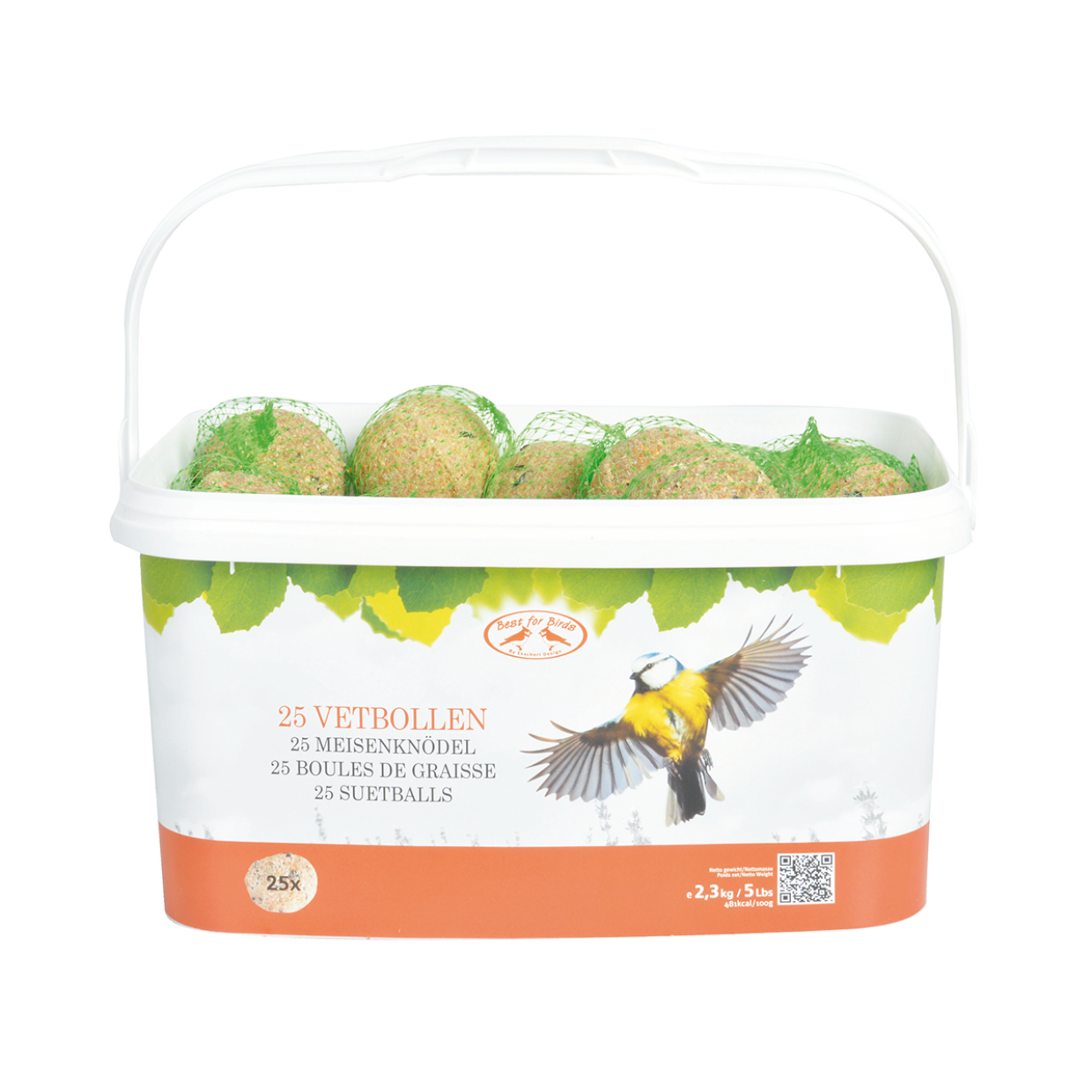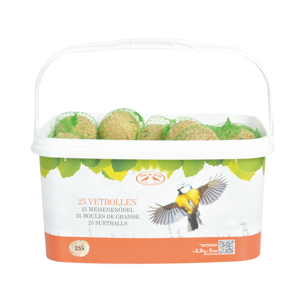 La nourriture pour oiseaux Esschert Design est non seulement de haute qualité, mais son emballage, frais et coloré, offre également une valeur ajoutée. Ces boules de suif sont exceptionnellement nutritives et fournissent toutes les protéines et vitamines nécessaires à toutes les espèces d'oiseaux de jardin. En raison du déclin de leur habitat, il devient de plus en plus difficile pour les oiseaux de se nourrir quotidiennement. Grâce à cette nourriture complémentaire soigneusement sélectionnée, les oiseaux peuvent continuer à subvenir à leurs besoins quotidiens. Riches en protéines et en huiles, les boules de suif offrent aux oiseaux une alimentation riche en calories et en énergie. Les ingrédients de ces boules de suif sont formulés pour être utilisés pendant l'hiver. • Lot de 25 boules de suif • Conditionné dans un seau rectangulaire • Refermable