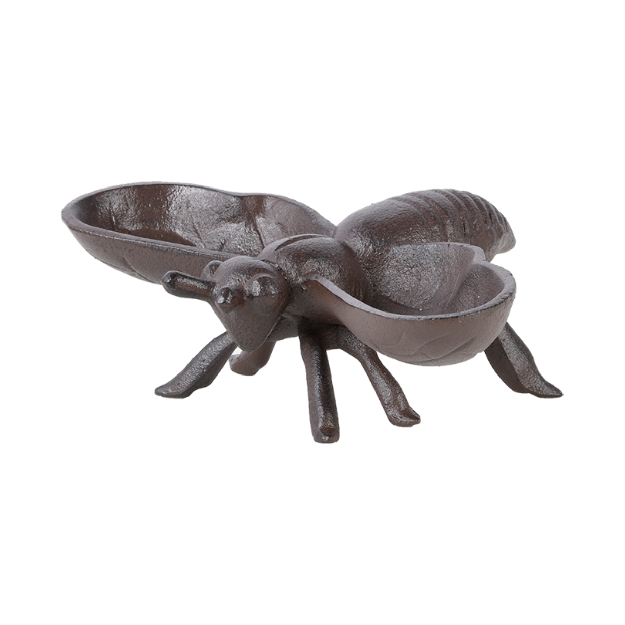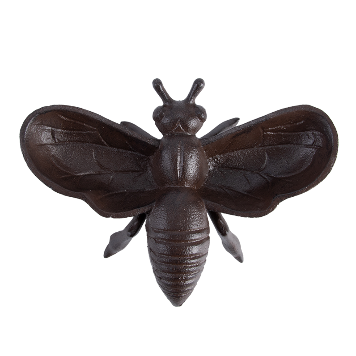 Cette mangeoire en fonte en forme d'abeille comporte deux parties, une pour la nourriture et une pour l'eau.