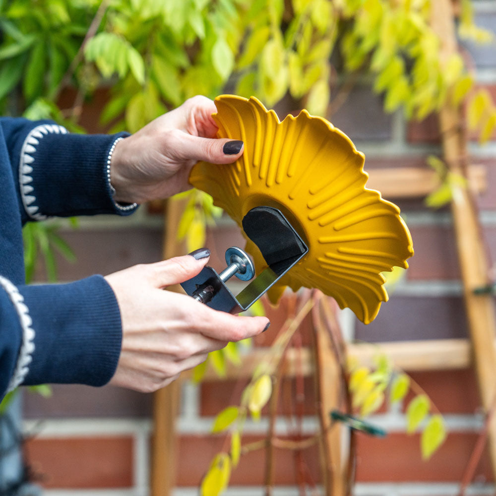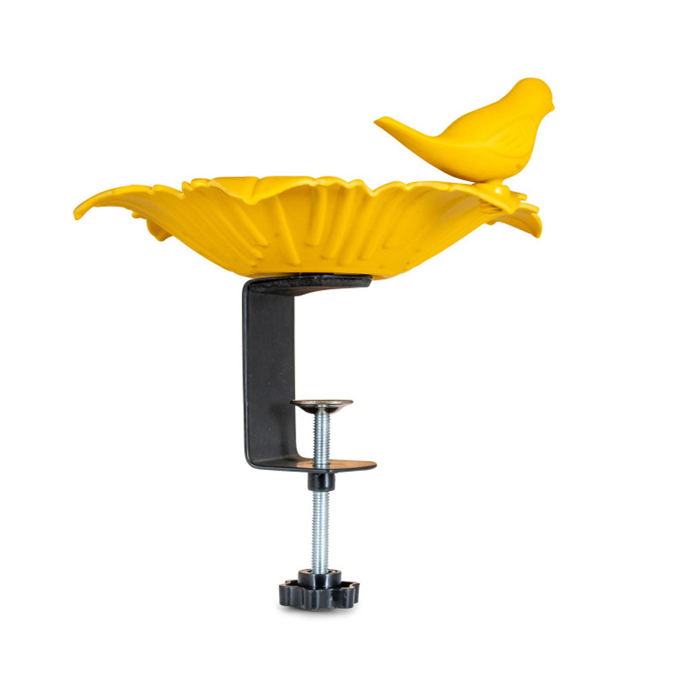 Balkon Waterschaal Balus (okergeel) – Verstelbaar vogelbad met klem voor balkons