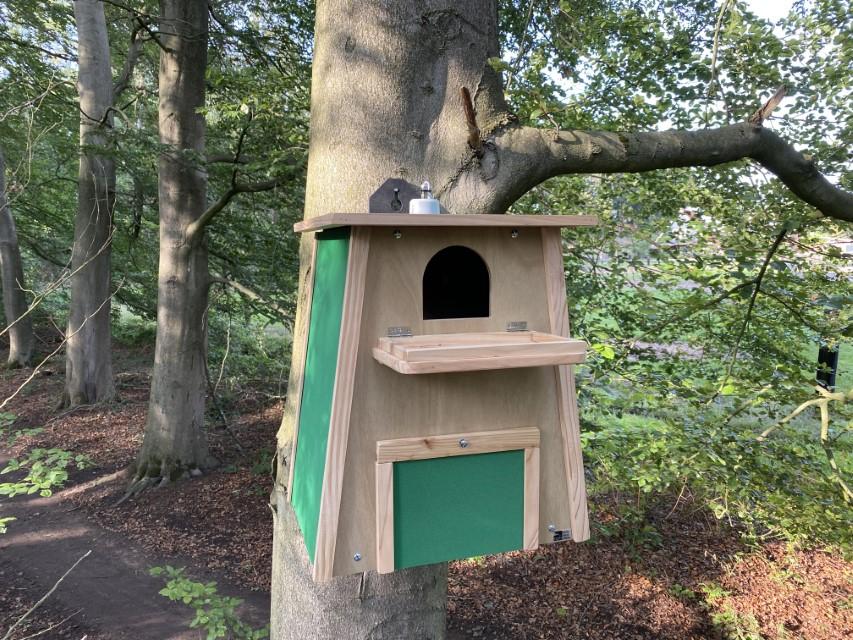 CaptureWILD nestkast met ingebouwde digitale camera Deze in Nederland handgemaakte kerkuil nestkast is reeds voorzien van de camera, u hoeft zelf niets te monteren. Het aansluiten van de nestkast op uw router/modem is plug en play en wordt ondersteund door een eenvoudige handleiding. Naast het live bekijken van de beelden kunt u ook de beelden terugkijken welke de camera automatisch voor u opslaat op het interne geheugen. Digitale IP netwerk camera. Bewegingsdetectie, beelden worden enkel bij beweging opgeslagen. 1080P Full HD resolutie. Beelden op uw telefoon live en terug kijken, wáár ook ter wereld. Infrarood nachtzicht onzichtbaar licht voor mens en dier, het beeld schakelt over naar zwart/wit in de nacht. U hoeft geen IT specialist te zijn om deze camera aan te sluiten, de handleiding loodst u stap voor stap door het eenvoudige proces. De camera wordt direct op uw router / modem aangesloten waardoor u, waar u ook bent, de beelden kan raadplegen mits uw telefoon op dat moment een werkende internetverbinding heeft. Dit kan WiFi of 4G/5G zijn. Voor de installatie heeft u enkel uw router/modem nodig en één vrij stopcontact nabij uw router/modem. Er hoeft geen stopcontact te worden voorzien bij de nestkast, de stroom en het beeld lopen beiden over dezelfde dunne kabel. Tijdens het bestellen selecteert u de gewenste kabellengte; deze kabel komt tussen de nestkast en uw router/modem. Wij bieden u kabels aan tot 100 meter. indien u een langere afstand wenst te overbruggen óf het is niet mogelijk met deze kabel vanaf de nestkast bij uw router/modem te komen adviseren wij u contact met ons op te nemen, we zullen u dan een oplossing op maat bieden. Wij hebben een oplossing op maat voor ieder scenario. CaptureWILD is de eerste nestkastleverancier die nestkasten op de markt heeft gebracht met een digitale IP camera i.p.v. een analoge camera. Waarom is digitaal beter? Digitaal heeft vele voordelen ten opzichte van de traditionele analoge camera een nestkast met een inmiddels verouderde analoge camera kunt u herkennen aan de bekabeling, deze heeft een witte, rode en gele stekker. Een hogere beeld resolutie scherper beeld. Ingebouwde recorder. Beelden zijn op uw telefoon te bekijken. Perfect nachtzicht waarbij de camera automatisch overschakelt naar zwart/wit beeld om een hoger contrast te bieden. De beelden zijn gekoppeld aan uw netwerk hierdoor kunt u overal ter wereld uw beelden kunt bekijken. Een digitale camera heeft bewegingsdetectie en neemt alleen op bij beweging. Beelden zijn op uw telefoon te bekijken.