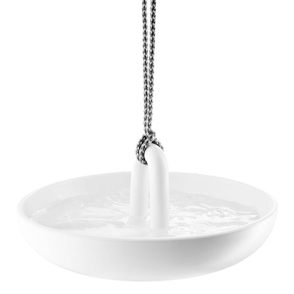 Verblijd vogeltjes met het Eva Solo vogelbad. Hiermee geef je vooral kleine vogels gemakkelijk toegang tot vers water. Je hangt het vogelbad eenvoudig op met het ophangkoord en je kan hem het hele jaar door buiten laten hangen. Keramieken vogelbad: Ø 25 cm Makkelijk op te hangen aan het koord Ideaal voor kleine vogels Weerbestendig, dus kan het hele jaar buiten hangen! Maak het vogelbad schoon met een vochtige doek