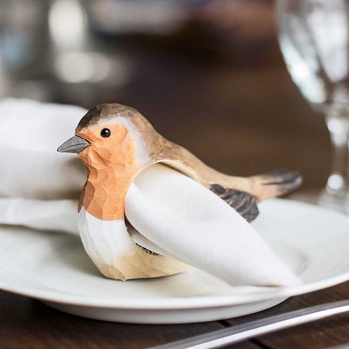Dek de feesttafel of het familiediner met onze met de hand gesneden roodborstje servetring. Onze houten servetringen voegen een vleugje van het buitenleven toe zodat jong en oud onze meest voorkomende tuinvogels kunnen leren herkennen. Fijn met de hand beschilderd, de rode borst van het roodborstje accentueert het kenmerk van deze vogels.