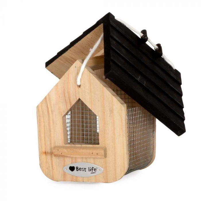 Dit voederhuis is ideaal om pinda’s in aan te bieden. Het is geweldig om te zien hoe vogels vanuit verschillende posities pinda’s uit dit leuk vormgegeven voederhuisje halen. Om het bij te vullen schuift u eenvoudig het dak omhoog. Inclusief ophangkoord.